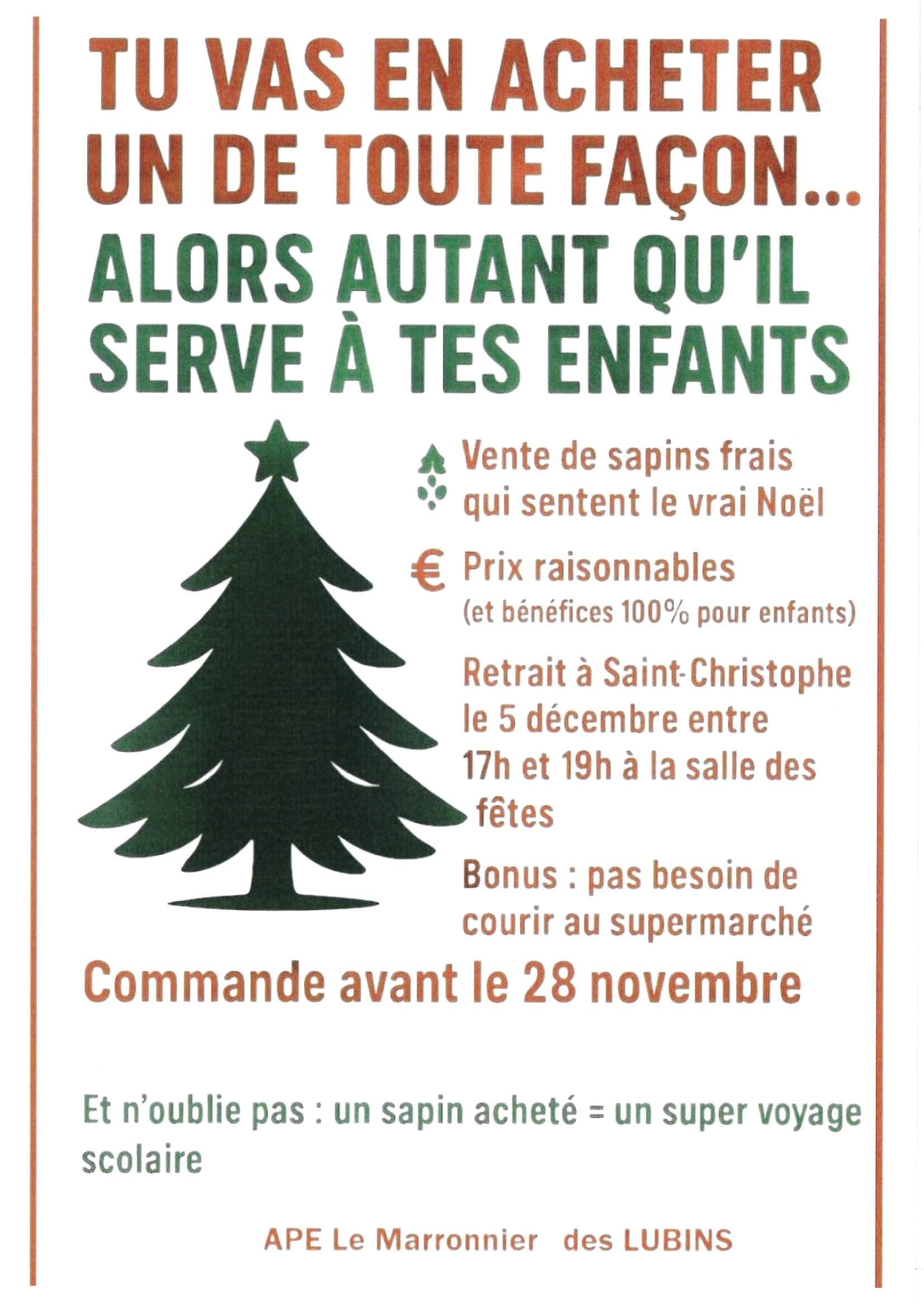 đ VENTE DE SAPINS đ Pour toute commande ou renseignement, veuillez vous adresser Ă l’Ă©cole de Saint-AoĂ»t – 02.54.36.29.28.