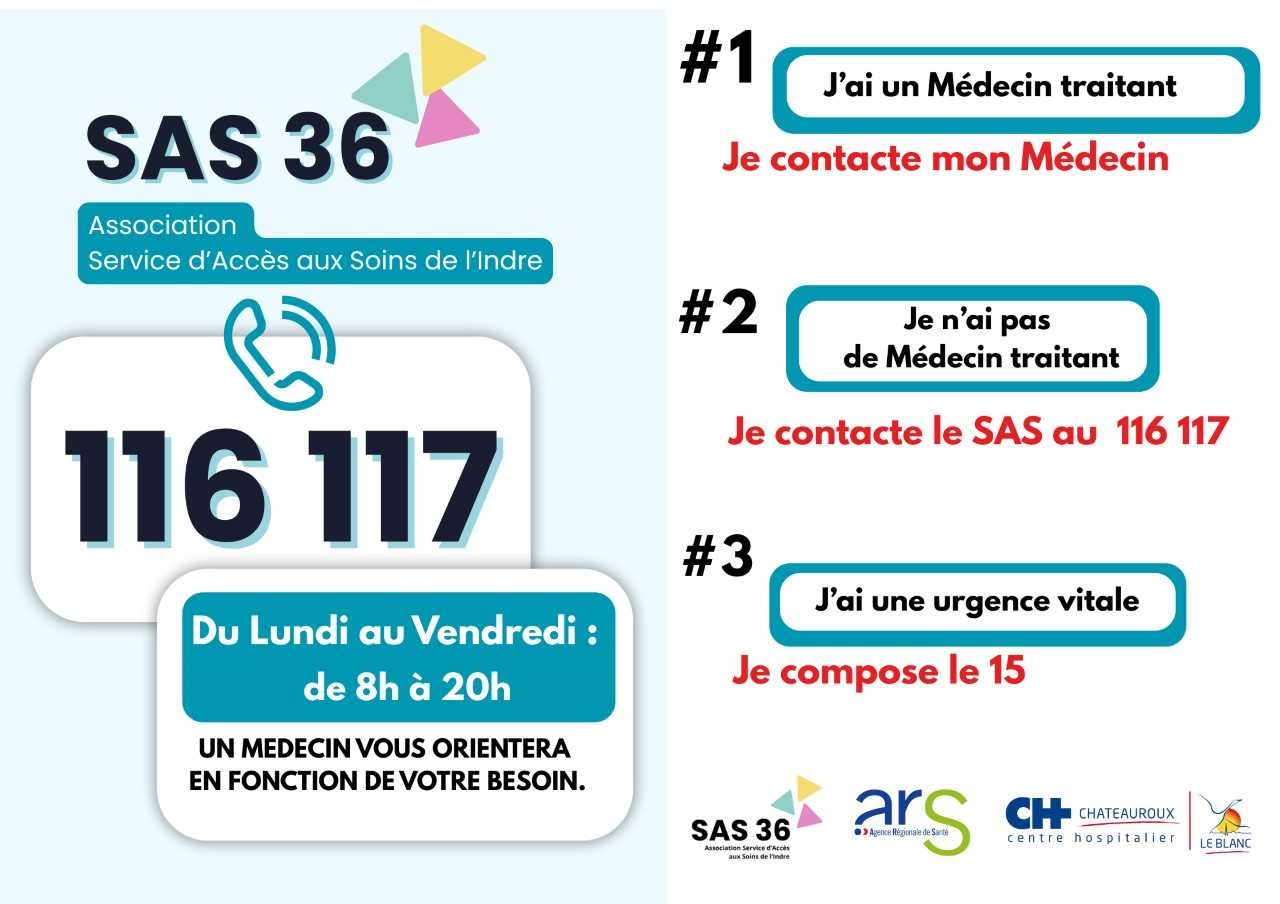 Le Service d’Accès aux Soins est un service départemental de régulation médicale libérale. Il garantit au patient sans médecin traitant (ou en cas d’indisponibilité), une orientation rapide et adaptée pour une demande de soin urgent : conseil ou consultation. Du lundi au vendredi, de 8h à 20h.