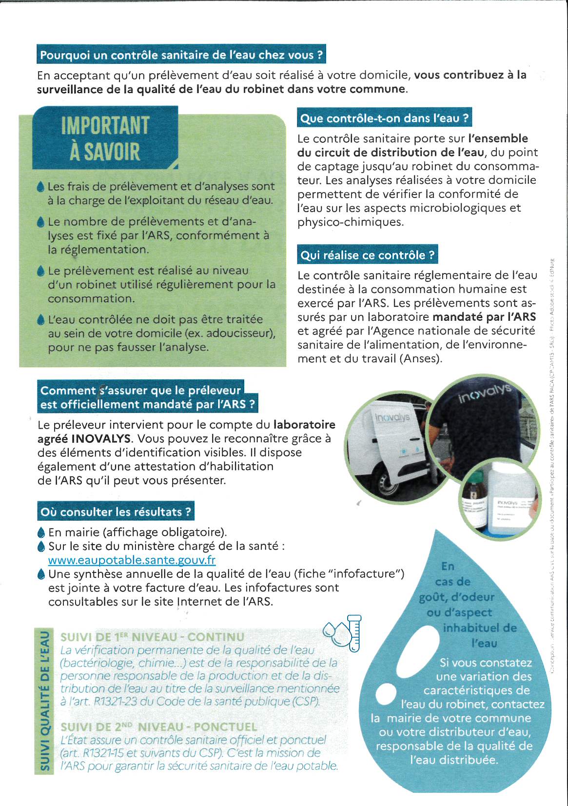 Dans le cadre du contrĂ´le sanitaire de l’eau destinĂ©e Ă la consommation humaine, l’Agence RĂ©gionale de SantĂ© (ARS) Centre-Val de Loire peut ĂŞtre amenĂ©e Ă rĂ©aliser des prĂ©lèvements d’eau au robinet chez des particuliers, afin de vĂ©rifier la qualitĂ© de l’eau distribuĂ©e.