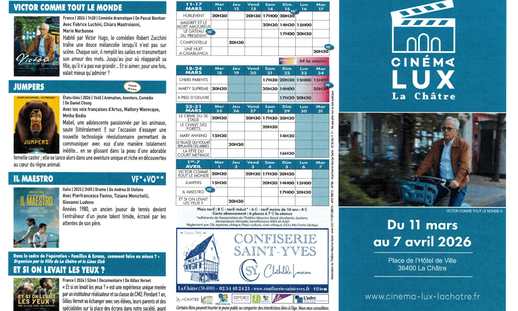 Voici le programme du cinéma de La Châtre.