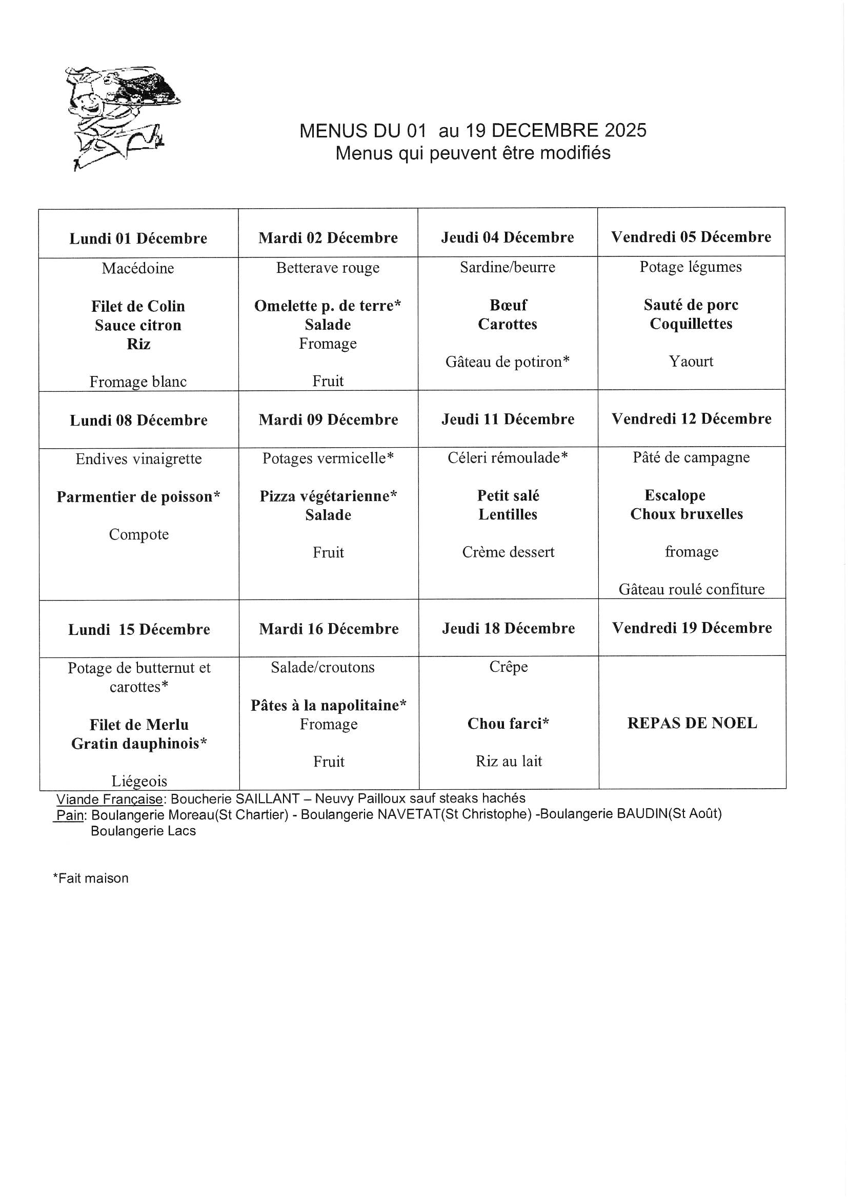 Mme Jessica JORANDON assure la préparation des repas et le service secondée par Mme Pascale RAFFINAT.